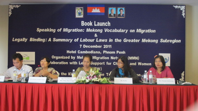 On the 7th of December 2011, the Mekong Migration Network (MMN) launched two new publications, “Speaking of Migration: Mekong Vocabulary on Migration” and “Legally Binding: A Summary of Labour Laws in the Greater Mekong Subregion” at the Cambodiana Hotel in Phnom Penh.